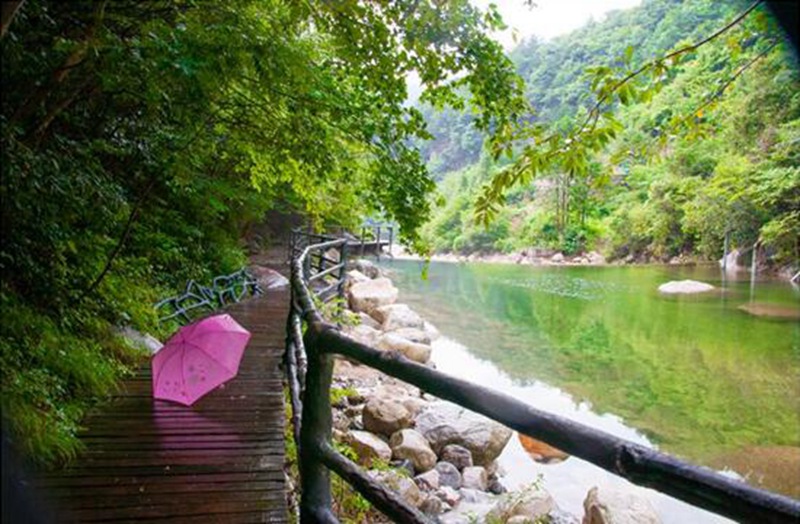 下午兩個多小(xiao)時車程(cheng),直(zhi)奔(ben)(ben)天堂寨白馬大(da)(da)峽谷,迎接(jie)我的(de)(de)(de),是一(yi)場酣暢淋(lin)漓的(de)(de)(de)大(da)(da)雨(yu)(yu),將(jiang)我擋在門前,來(lai)不及奔(ben)(ben)跑,急風裹著(zhu)驟(zou)雨(yu)(yu),打濕我的(de)(de)(de)衣(yi)裳。同(tong)事打趣,平日(ri)喜愛詩歌的(de)(de)(de)你,何(he)不即景吟詩一(yi)首(shou)?望著(zhu)連(lian)綿的(de)(de)(de)烏云和起伏的(de)(de)(de)黛山(shan),竟(jing)一(yi)時說不出一(yi)句話來(lai)。此(ci)刻,只見(jian)同(tong)行的(de)(de)(de)同(tong)事,撐一(yi)把(ba)黑(hei)傘,正拾級而上,不急不緩,閑庭(ting)信步,此(ci)時的(de)(de)(de)狂(kuang)風暴雨(yu)(yu)似乎(hu)與(yu)他無關,同(tong)事見(jian)狀哈(ha)(ha)哈(ha)(ha)大(da)(da)笑,正所謂“心中有晴雨(yu)(yu)亦(yi)晴”。