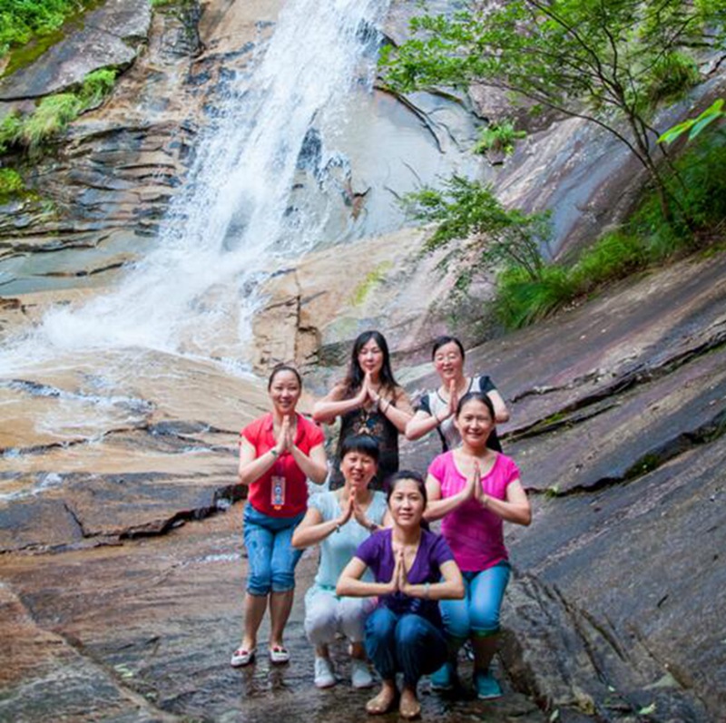 第二天(tian)的(de)(de)行(xing)程,至天(tian)馬自(zi)然保護(hu)區爬山(shan),途(tu)經五道瀑,每道瀑都有一(yi)個美(mei)(mei)麗(li)的(de)(de)傳說(shuo)。天(tian)公作美(mei)(mei),太(tai)陽偶爾露(lu)出臉,從樹縫間(jian)篩下(xia)一(yi)個個小光斑,山(shan)風習習,愜意微涼,感(gan)覺不到(dao)盛夏(xia)的(de)(de)炎熱。呼吸著新鮮的(de)(de)氧負離子(zi),神(shen)清(qing)氣爽,腳步變得(de)輕盈,走(zou)久了(le)路邊歇歇腳,停下(xia)來跟一(yi)只爬行(xing)的(de)(de)毛(mao)毛(mao)蟲說(shuo)說(shuo)話(hua),看一(yi)張蜘蛛結的(de)(de)網,和不知(zhi)名的(de)(de)植被合個影,樹根邊覆滿一(yi)抔抔青苔,生(sheng)出一(yi)朵朵打(da)著傘的(de)(de)菌菇。在銀弓瀑,清(qing)澈(che)見底五彩(cai)斑斕的(de)(de)石塊間(jian),發現潛在水(shui)底游(you)動的(de)(de)娃娃魚,驚喜,那一(yi)刻仿(fang)佛自(zi)己就是(shi)一(yi)條歡快的(de)(de)魚,自(zi)由而自(zi)在。晶(jing)瑩剔(ti)透的(de)(de)瀉(xie)玉瀑響徹山(shan)澗(jian),霧氣迷蒙,打(da)濕我們的(de)(de)衣角,在瀑布雨跳動的(de)(de)音(yin)符伴奏下(xia),我們放松身心(xin),感(gan)恩(en)生(sheng)活(huo),感(gan)受瑜珈(jia)之美(mei)(mei)。