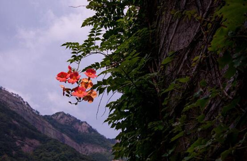 峽谷入口處,一團盛開的凌(ling)(ling)霄(xiao)花吸引(yin)了我的視線,“凌(ling)(ling)云而(er)上,直沖云霄(xiao)”,凌(ling)(ling)霄(xiao)花,我喜歡你的名字。